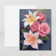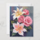 White Lillies Pink Rose Bouquet Watercolor Floral Painted Card