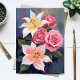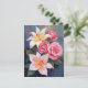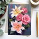 White Lillies Pink Rose Bouquet Watercolor Card