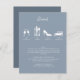 Tarjeta de detalles de coordinación de amigos pintada y detallada. Jardín, botánico, huella natural. Tarjeta de detalles con tostadas de copas de vino, cubiertos para la cena, zapatos para bailar y auto de estilo antiguo para buenas noches! Vea todas las piezas coordinadoras de la colección Peonies with Dusty Blue Boda. color pantone de fondo azul Dusty Blue 16-4010 o hex 8c9dad, color de fondo #606f7e Se pueden cambiar los colores y todos los aspectos son editables.
