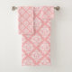 Elevate your bathroom décor with our exquisite white floral vintage damask towels, featuring a custom pink background. A timeless and elegant design that adds a touch of luxury to your everyday routine.