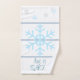 Crisp white background with pretty slate blue geometric lines. Winter themed typography, Silver gray and icy blue snowflakes elements. Designs by TamiraZDesigns.