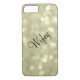 Este es un divertido y brillante funda de iPhone 7 acentuado con Wifey, escrito en sofisticados guiones en un bokeh fondo de oro. Nota: no se usan purpurinas ni secuencias para hacer este funda, el fondo dorado brillante es un ilustracion fotográfico. Este funda es fácil de personalizar con su nombre, monograma o señora si lo prefiere.