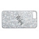 Este es un divertido y coqueto funda de iPhone 7 acentuado con Wifey, escrito en sofisticado guión en un brillante fondo plateado. Nota: no se usan purpurinas o secuencias para hacer este funda, el fondo brillante es un ilustracion de fotos. Este funda es fácil de personalizar con su nombre, monograma, Wifey o señora si lo prefiere.