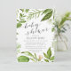 Nuestra invitación a la ducha de bebé Wild Meadow incluye detalles de tu ducha de bebé en gris, enmarcados por una vegetación acuática pintada en exuberantes tonos de verde primavera, olivo y helecho. Una elección moderna pero orgánica con acentos de caligrafía de moda, para las duchas neutras de género con hojas y tallos verdes frescos en la vegetación, color del año 2017.