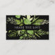 Aliente a sus clientes y clientes a compartir el amor con estas tarjetas de moda botánica de referencia. El frente presenta una sola línea de texto personalizado enmarcada por un borde de hojas botánicas acuáticas exuberantes en tonos de helecho y verde primavera sobre un fondo negro rico. Agregue la información de contacto y los términos de referencia al reverso utilizando los campos de plantilla proporcionados. Incluye espacio para los nombres de los remitentes y nuevos clientes.