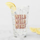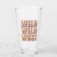 Diseño de texto "Wild Wild West" de estilo retro con letras rayadas en colores amarillo, rojo y beige