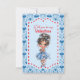 This cute card featuring a teenager holding a string of hearts, on a plain light blue background, etched with a red outline. The back of