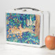 Caja de almuerzo en un ilustracion de William Morris de dos arcas que atraviesan un entorno forestal salvaje - digital realzado y colorido