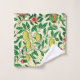 Toalla colocada en un estilo Art Nouveau de William Morris de limones, granadas y melocotones, con flores, en ramas frondosas -fruta en amarillo y naranja de coral, con hojas verdes, en un fondo estampado amarillo y blanco