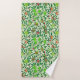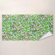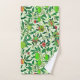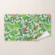 Toalla colocada en un patrón Art Nouveau de William Morris de limones, granadas y melocotones, con flores, ramas frondosas -fruta en verde limón y naranja de coral, con hojas verdes, con un fondo blanco y verde limo pateado