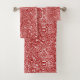 Toalla ambientada en un William Morris vintage, Art Nouveau, impresa a partir de obras de arte tradicionales de la India, realzadas digitalmente y coloreadas, en blanco sobre un fondo rojo profundo y chino