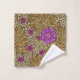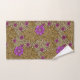 Toalla colocada en un William Morris vintage, Art Nouveau, huella de damasco de marigold de hojas y flores en tonos marrón claro y beige, acentuada con violeta y rosa, sobre un fondo marrón chocolate oscuro
