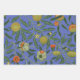 Patrón de papel pintado de William Morris Pomegranate, fruta azul - Este diseño floral es un patrón de papel tapiz muy colorido diseñado en 1865-66 por el famoso diseñador de papel pintado William Morris. La huella botánica tiene un fondo azul brillante y las granadas verdes y rojas se entretejen en el diseño. Las hojas y los tallos verdes se abren paso al lado de la huella floral.