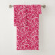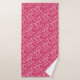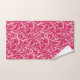 Toalla colocada en un adamascado William Morris vintage de flores y hojas de cardo, en rosa fucsia profunda, en un fondo rosa pastel, realzado digitalmente y colorido
