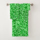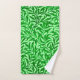 Toalla colocada en un patrón vintage de William Morris de ramas estilizadas de sauce, en verde esmeralda medio a oscuro, sobre un fondo verde de menta pálido