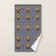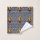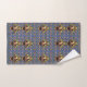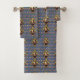 The Bard - La obra de arte original de ZoeSPEAK en este juego de toallas de baño es un patrón hecho con un retrato del autor William Shakespeare. El retrato está en un marco dorado oval ornamentado con cintas y una corona encima. El fondo azul de la pared está decorado con castillos, coronas de reyes y flores amarillas y rojas, recordando el romance, la tragedia y la comedia de sus obras y poesía.