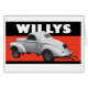 Imagen vuelta a trabajar Digital de un corredor 1941 de la fricción de Willys en el fondo de rojo y de negro con la palabra blanca grande "WILLYS".