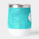 Es hora de "Wine O'Clock" en la playa con este tumbler de vino de acero inoxidable de moda que ayuda a mantener tu bebida helada. El color de fondo incluye una superficie de agua de color azul marino. Seleccione su estilo de vaso de vino.