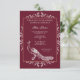 Crea una invitación única a todos los tuyos con una invitación a la ducha de novias Wine Peacock Flourish. El diseño de la invitación incluye un elegante pavo real adornado con flores. Personalice el nombre de la novia junto con los detalles de la ducha de novia. También hay material de boda adicional disponible con este diseño.