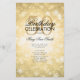 Elegante diseño de "Programa de fiesta de cumpleaños" con copos de nieve de invierno y luces en oro con texto personalizado.