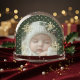 Celebrate the serenity of winter and the miracle of new life with this customizable snow globe featuring a sleeping baby nestled in a white knitted outfit, crowned with delicate green leaves and white berries. The backdrop shimmers in deep forest green, adorned with golden stars and snowflakes that evoke a celestial hush. Both sides of the globe are customizable, allowing you to add a name, date, or heartfelt message—making it a perfect keepsake for baby's first Christmas, winter births, or holiday blessings. A poetic fusion of nature and nurture, this globe is a gentle muse for your seasonal décor or gift-giving ritual.