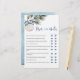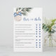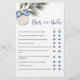 Tarjeta de juegos para la ducha de novia Chinoiserie de invierno, tarjeta de juegos para la ducha de Navidades.