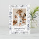 Foto acuarela de Happy Holidays con follaje de invierno y bayas. Personalice fácilmente esta tarjeta de vacaciones con su foto, nombre de familia y texto.