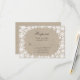 Delicados copos de nieve en un patrón de encaje, en un fondo de burrega ilustrado, acentúan este RSVP de coordinación para el encaje invernal en la invitación a la boda de Burlap. Se muestra en el papel básico; sin embargo, recomiendo el peso y textura del papel de lino.