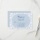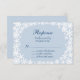Delicados copos de nieve en un patrón de encaje, en un fondo azul glacial, acentúan este RSVP coordinador para el Winter Lace en la Invitación a la Boda Azul helada. Se muestra en el papel básico; sin embargo, recomiendo el peso elegante y la textura del papel de lino, o el efecto delicado del papel de hielo metálico para la impresión.