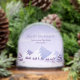 Commemorate a special winter getaway with this elegant mountain-themed snow globe. Featuring a serene landscape of lavender-hued snowy peaks and frosted pine trees, this design is perfect for a bachelorette party, ski club trip, or winter wedding favor.