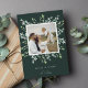 Festividad y elegancia en tonos verde pálido, jade gris y blanco, nuestra tarjeta fotográfica de vacaciones Winter Sage incluye tu foto cuadrada favorita enmarcada por hojas botánicas verdes esbozadas en un fondo verde oscuro. Personalice el saludo de su personalizado (que se muestra con "alegre y brillante") y su firma familiar debajo.