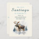 Una tarjeta de invitación de cumpleaños con un alce. Para los niños nacidos en invierno. Personalizar este producto agregando la información de su fiesta.