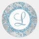 Este elegante, monogramado patrón de damasco purpurina FAUX azul celeste, gris plateado, floral de 1.5", Bat Mitzvah pegatina o sello para sobres tiene un fondo de copos de nieve blancos variados que coinciden con las invitaciones de Bat Mitzvah mostradas abajo. Puedes cambiar la inicial a la propia, y también puedes cambiar el tamaño y/o forma del pegatina, aunque para obtener mejores resultados, por favor envíame un correo electrónico para cambiar la forma. Si necesita cualquier otro elemento coincidente en este diseño, envíe su solicitud a niteowlstudio@gmail.com.