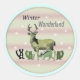 Un gran ciervo con grandes cuervos rodeado de amigos de la vida salvaje. Un zorrillo, un chipmunk y un par de ardillas. Un fondo de colores suaves y soñadores con pequeños copos de nieve para dar un aire de tierra de maravilla de invierno. Un dulce pegatina de vacaciones para añadir a sus paquetes de Navidades.