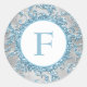 Este elegante pegatina o sello para sobres de patrón de damasco purpurina de 1.5" monogramado azul hielo, color gris plateado y floral FAUX, tiene un fondo de variados copos de nieve blancos que coinciden con la invitación de boda de invierno que se muestra a continuación. Puedes cambiar el monograma a lo que quieras, y también puedes cambiar el tamaño y/o forma del pegatina, aunque para obtener los mejores resultados, por favor envíame un correo electrónico para cambiar la forma. Si necesita cualquier otro elemento coincidente en este diseño, envíe su solicitud a niteowlstudio@gmail.com.