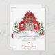 Esta cédula de Navidades de invitación en movimiento de invierno incluye un granero rojo con una corona verde, situado contra un paisaje nevado y árboles. La tarjeta es perfecta para enviar a amigos y familiares durante la temporada de vacaciones para hacerles saber de su nueva dirección y compartir su amor por el país. El diseño general es festivo y encantador, y la tarjeta pone una sonrisa en los rostros de tus seres queridos.