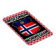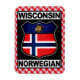 Wisconsin Imán Noruego Estadounidense. Diseño noruego de Wisconsin, en el estilo de un genial símbolo de la ruta estadounidense. El texto en noruego Wisconsin está en la parte superior e inferior, con la bandera del Estado de Wisconsin y la bandera de Noruega dentro del signo de la ruta. ¡Ideal para los Wisconsin de ascendencia noruega, y para los expatriados!