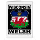 Diseño clásico del estilo de señalización de la ruta estadounidense, con el texto WISCONSIN WELSH, y las banderas del estado de Wisconsin y Gales.