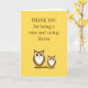 Esta tarjeta de agradecimiento médico presenta un tema de búho sabio. ¡Siéntase libre de editar el texto para referirse a la especialización del médico! Los adorables búhos aparecen en el interior de la tarjeta, así como en el frente.