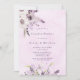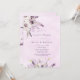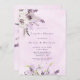 El diseño tiene un color impreso con elementos florales en tonos violeta, violeta, lila y blanco sobre hojas de follaje y flores rosas sobre un fondo de acuarela lavanda. ¡Genial para las celebraciones de sus bodas!