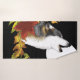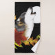 Un lobo aullando en una luna llena con hojas de otoño y bellotas en un fondo negro