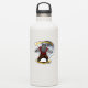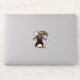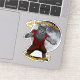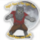 La noche es el momento adecuado para arrojar dulces. Divertido Pegatina de Halloween con un hombre lobo parado frente a la luna.