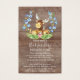 Carta corta para la tarjeta de bebé con un mono con flores azules de bonito colocado sobre un fondo rústico de madera para una ducha de bebé para niños.