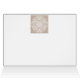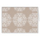 Esta mandala blanca se sienta sobre un fondo marrón claro o bronceado. El color es suave y natural. En algunas luces puede parecer un gris cálido. Parte de la colección Pras Mandala.
