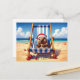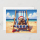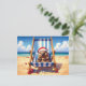 Un Wombat, un animal nativo australiano en una festiva santa que reclina en una playa de arena con baubles Feliz Navidad delante