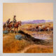 Charles (CM) Russell, el "vaquero artista", creó más de 2,000 pinturas de vaqueros, indios y paisajes ambientados en el oeste de Estados Unidos. Vivió y trabajó entre los vaqueros y la tribu hindú de la sangre en sus años pequeños. Esta imagen se llama "Worked Over" y muestra un agujero de agua en la pradera secándose.