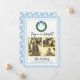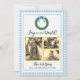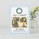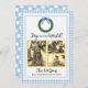 Esta tarjeta de Navidades clásica presenta un borde de manto azul acuarela con una corona de color azul. Personaliza con tus propios nombres y fotos familiares. Dice "¡Alegría al mundo!"