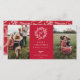 Monograma rústico de corona blanca de invierno, tarjeta fotográfica de vacaciones 2 en rojo festivo. Características de la tarjeta que coinciden con el respaldo del patrón y varias líneas de plantilla para el saludo de su personalizado.