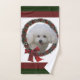 Las bonitas toallas de arte de los Navidades Bichon le dan un toque de vacaciones a la decoración del cuarto de baño.