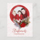 Un nuevo diseño en la colección "Nieve roja sobre lienzo blanco"! Una simple corona roja, con un acento floral, rodea la foto de tu familia. Y por supuesto, hay nieve roja. La parte posterior tiene el mismo esquema de color rojo y blanco, sólo invertida. Añade tu propio saludo a una increíble tarjeta de fotos de Navidad. ¡Que tengas unas vacaciones benditas!